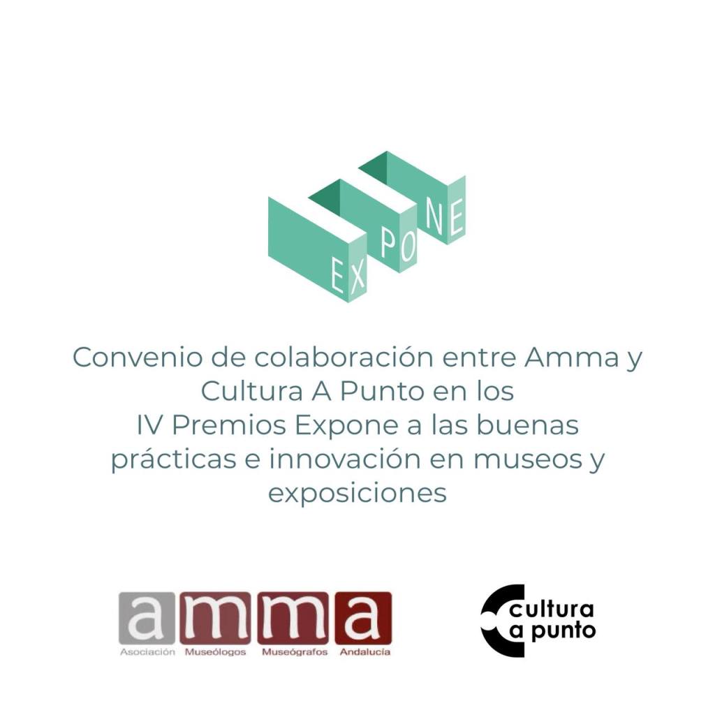 La Asociación de Museólogos y Museógrafos de Andalucía (AMMA) y Cultura A Punto han firmado un convenio de colaboración por el que nos convertimos en entidad patrocinadora de la IV edición de los Premios Expone a las buenas prácticas e innovación en museos y exposiciones.